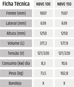 Estrutura Interna: Dois níveis aramados galvanizados com pintura eletrostática a pó Gabinete: Base em chapa pré pintada Portas: De abrir, chapa com poliuretano e gaxeta magnética Vidro: Temperado Pés: Reguláveis
